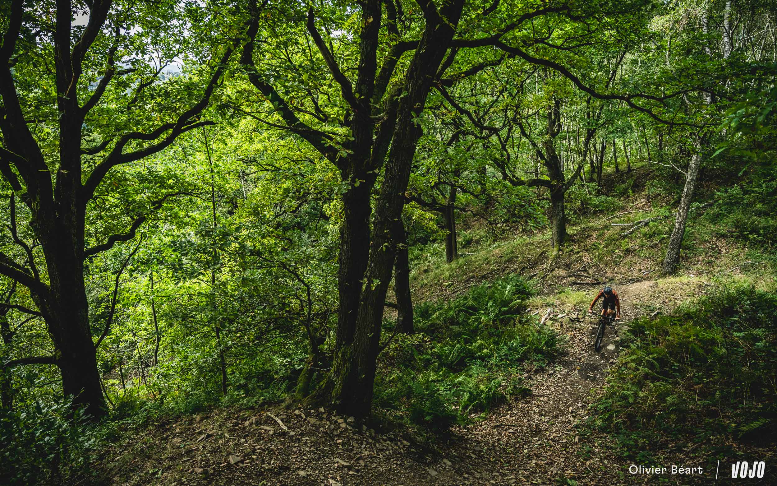Quand la pente se dresse, l’Alma se réveille. La position, légèrement portée vers l’avant, donne tout de suite envie de garder du rythme, sans jamais devenir inconfortable sur les longues ascensions. Le cadre filtre bien les vibrations, ce qui permet de rester assis longtemps sans se faire secouer, tout en offrant un transfert de puissance efficace. On profite d’une excellente motricité : l’arrière colle littéralement au sol, même dans les passages techniques où l’adhérence devient précaire, sans parvenir à ce que peuvent offrir les vélos tout-suspendus évidemment. On n’a pas l’impression d’un vélo “arc à flèche” qui demande d’attaquer tout le temps, mais plutôt d’un compagnon qui sait grimper fort, longtemps, sans vous vider les jambes trop vite.