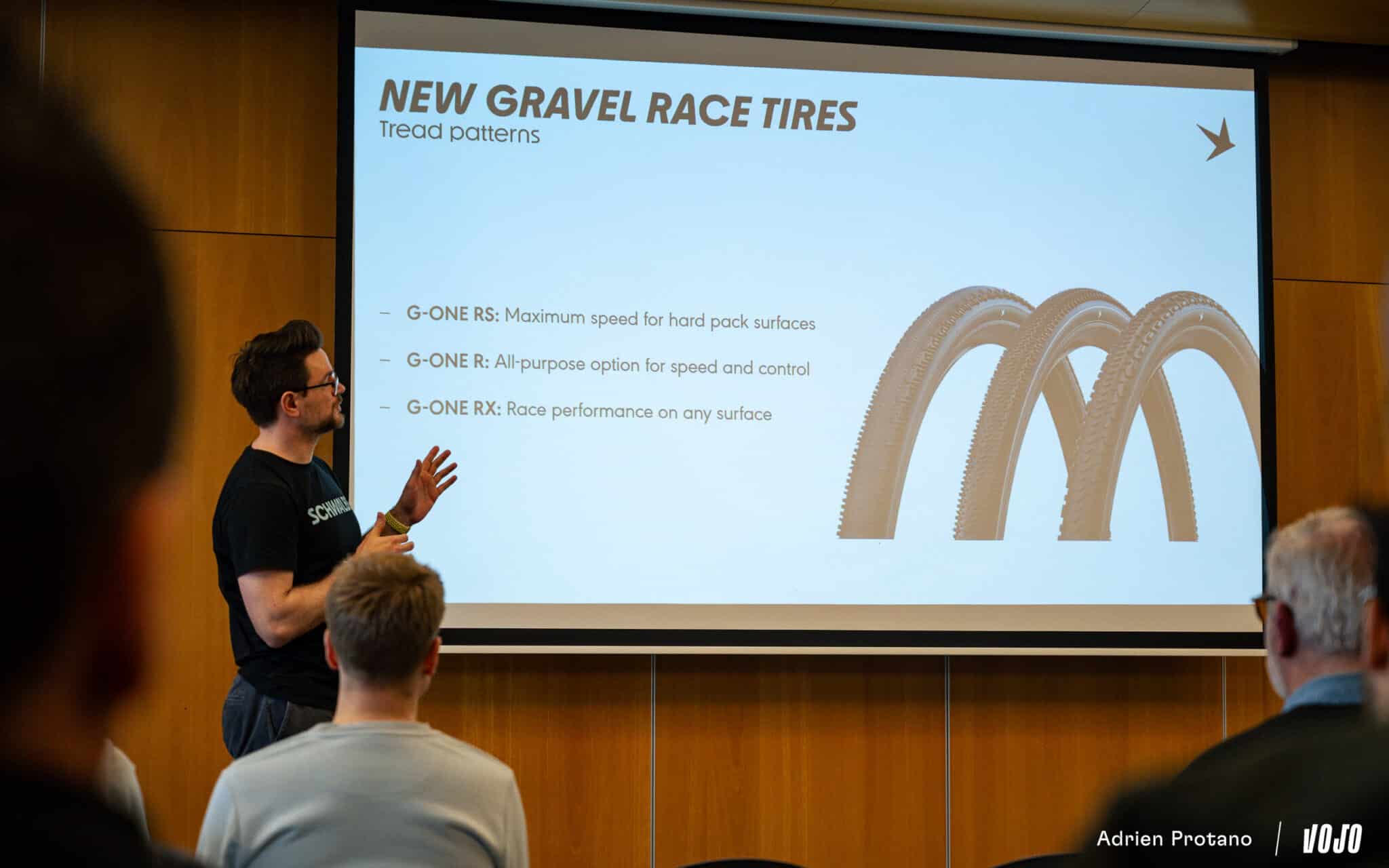 La marque a également profité de l’occasion pour dévoiler une nouvelle déclinaison de pneus gravel. La logique est simple : la récente gamme G-One RS, R et RX (cf. Test | La gamme de pneus gravel Schwalbe G-One R Pro & Overland Pro à l’épreuve du terrain) est désormais disponible dans une deuxième famille plus accessible que la gamme « Pro » jusqu’à présent commercialisée.