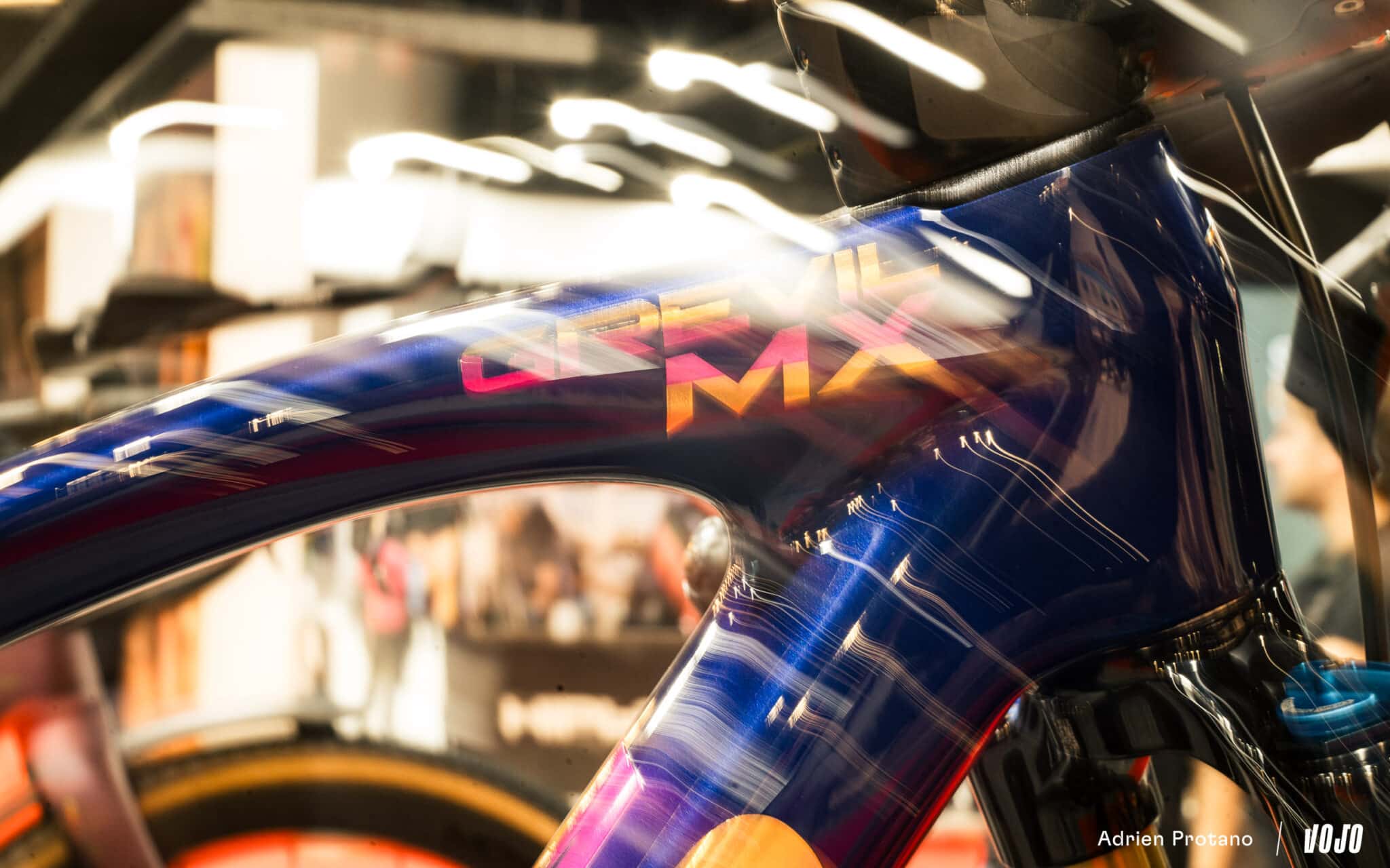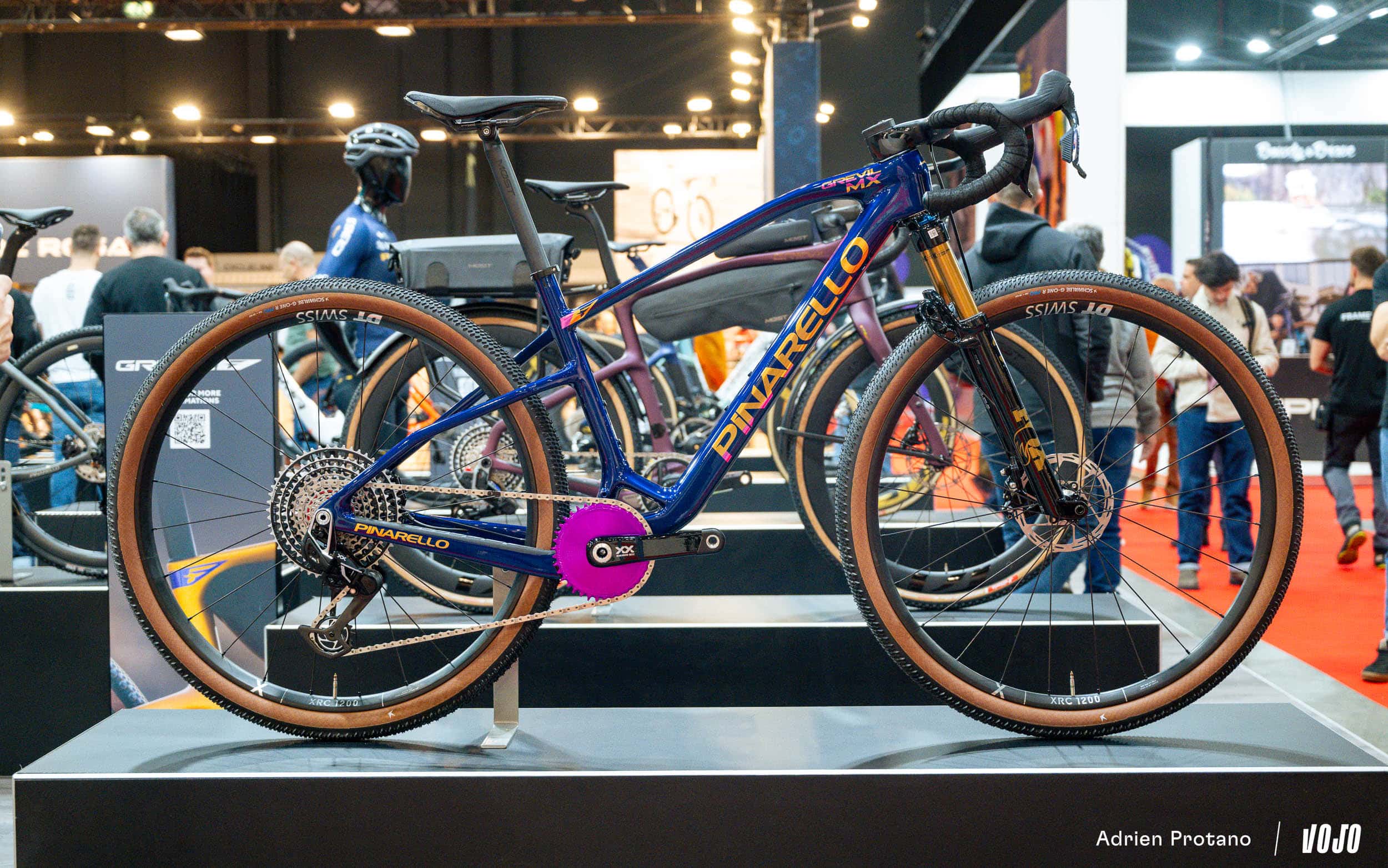 On vous en a déjà parlé dans un article dédié, et c’était l’une des principales attractions du salon : ce modèle hybride entre gravel et XC de chez Pinarello, le Grevil MX : Nouveauté | Pinarello Grevil MX : quand le gravel adopte une base de VTT XC