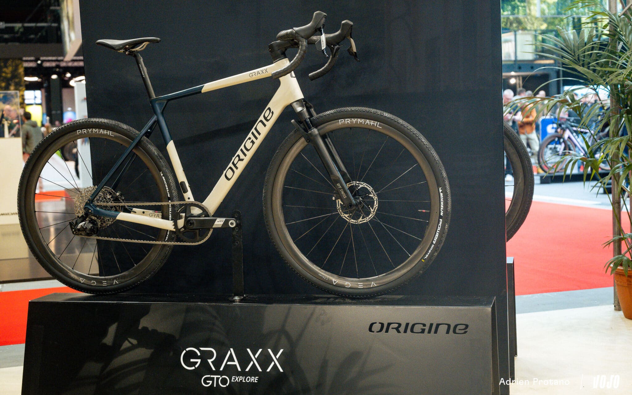 La marque présentait également une nouvelle déclinaison de son Graxx de gravel, baptisé Explore et équipé d’une (petite) fourche suspendue DT Swiss.
