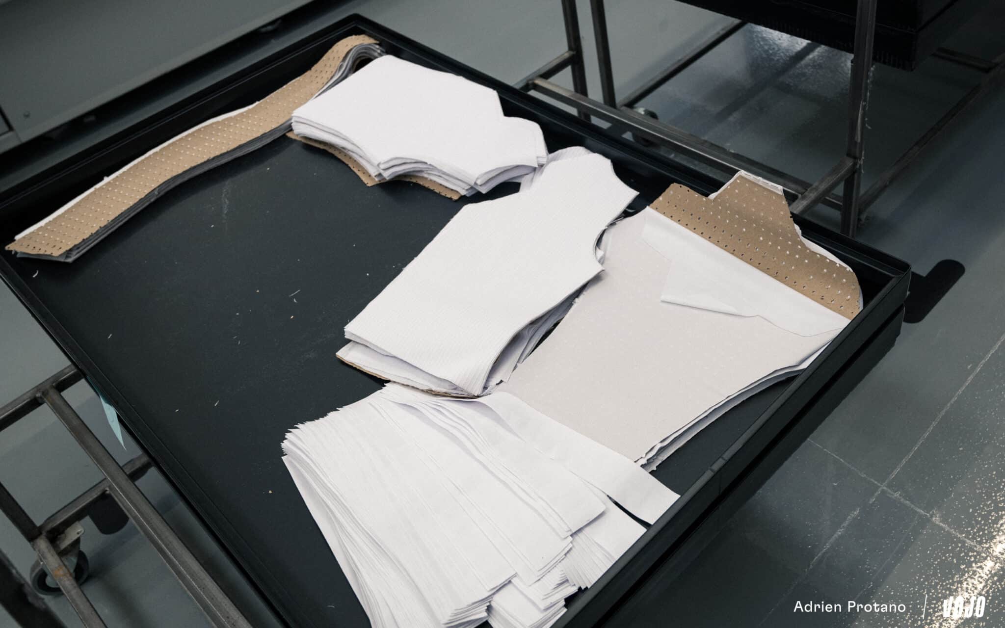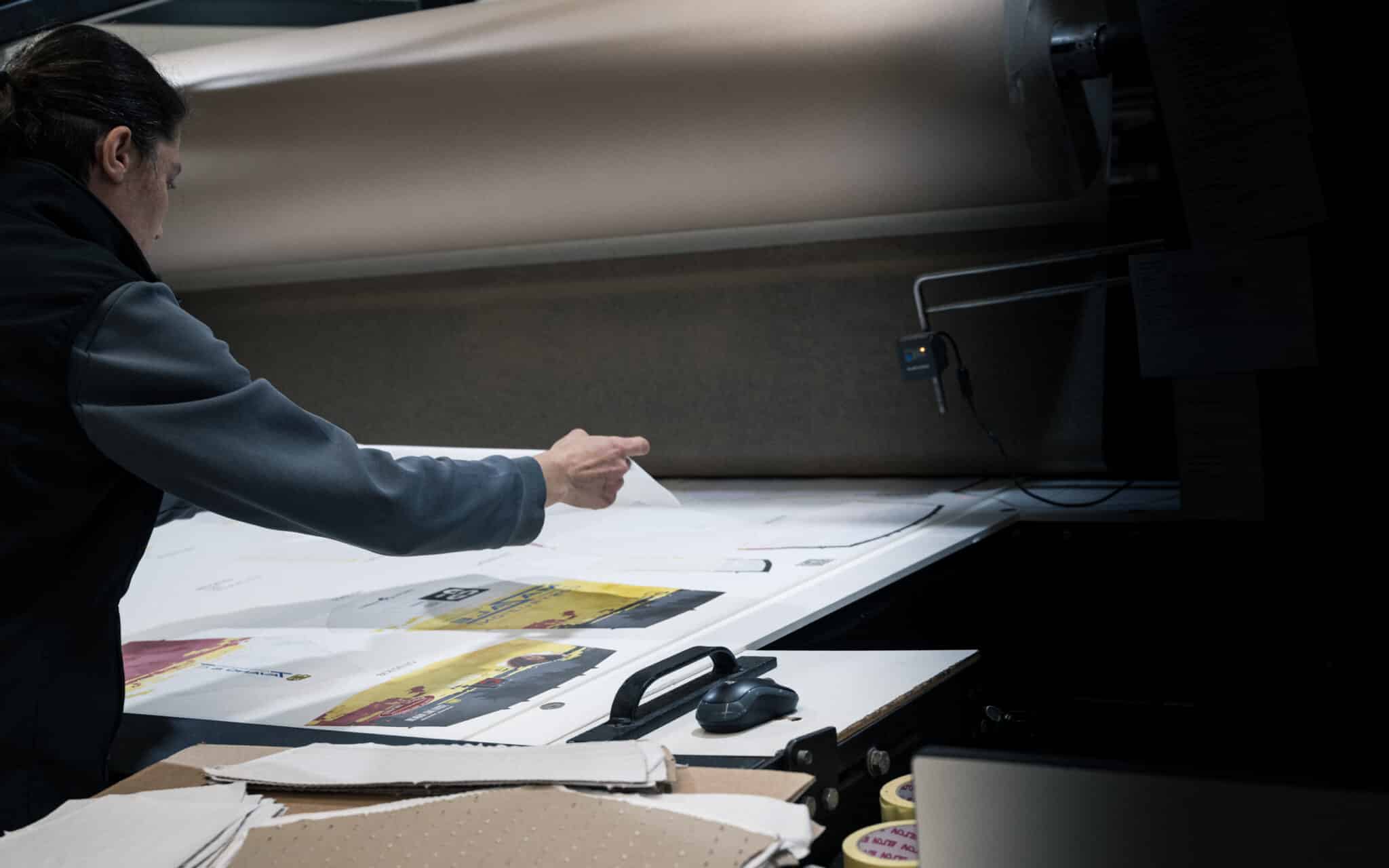 Dans une salle dédiée, de gigantesques imprimantes industrielles tournent en continu. Elles impriment les designs des maillots sur de grandes feuilles de papier à l’aide d’encres spécifiques. Contrairement à ce que l’on pourrait penser, le motif n’est pas imprimé directement sur le tissu. Le design est d’abord imprimé sur un papier spécial appelé papier de sublimation.