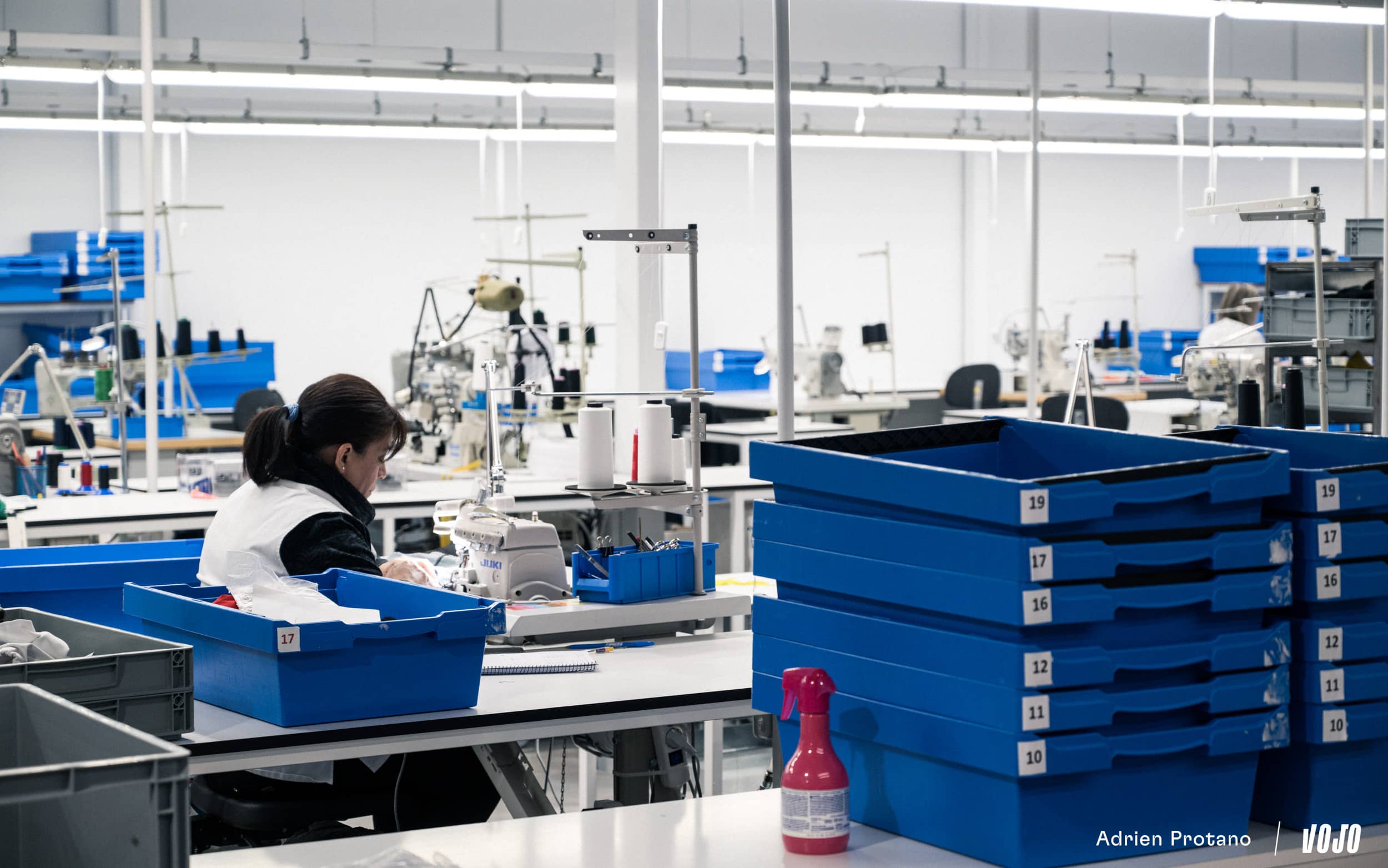 La marque gère également les retours en garantie et les réparations ici en interne, avec un atelier de réparation et de couture.