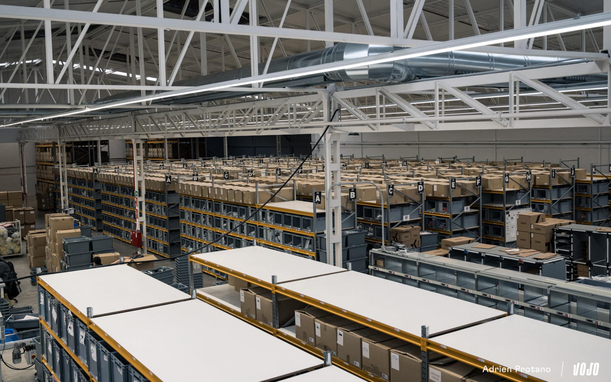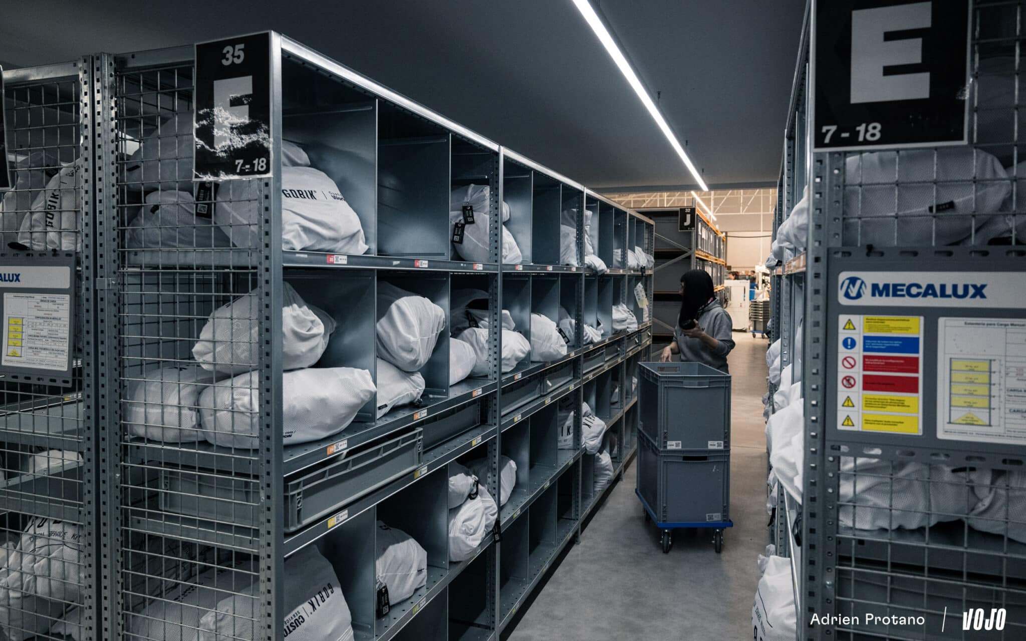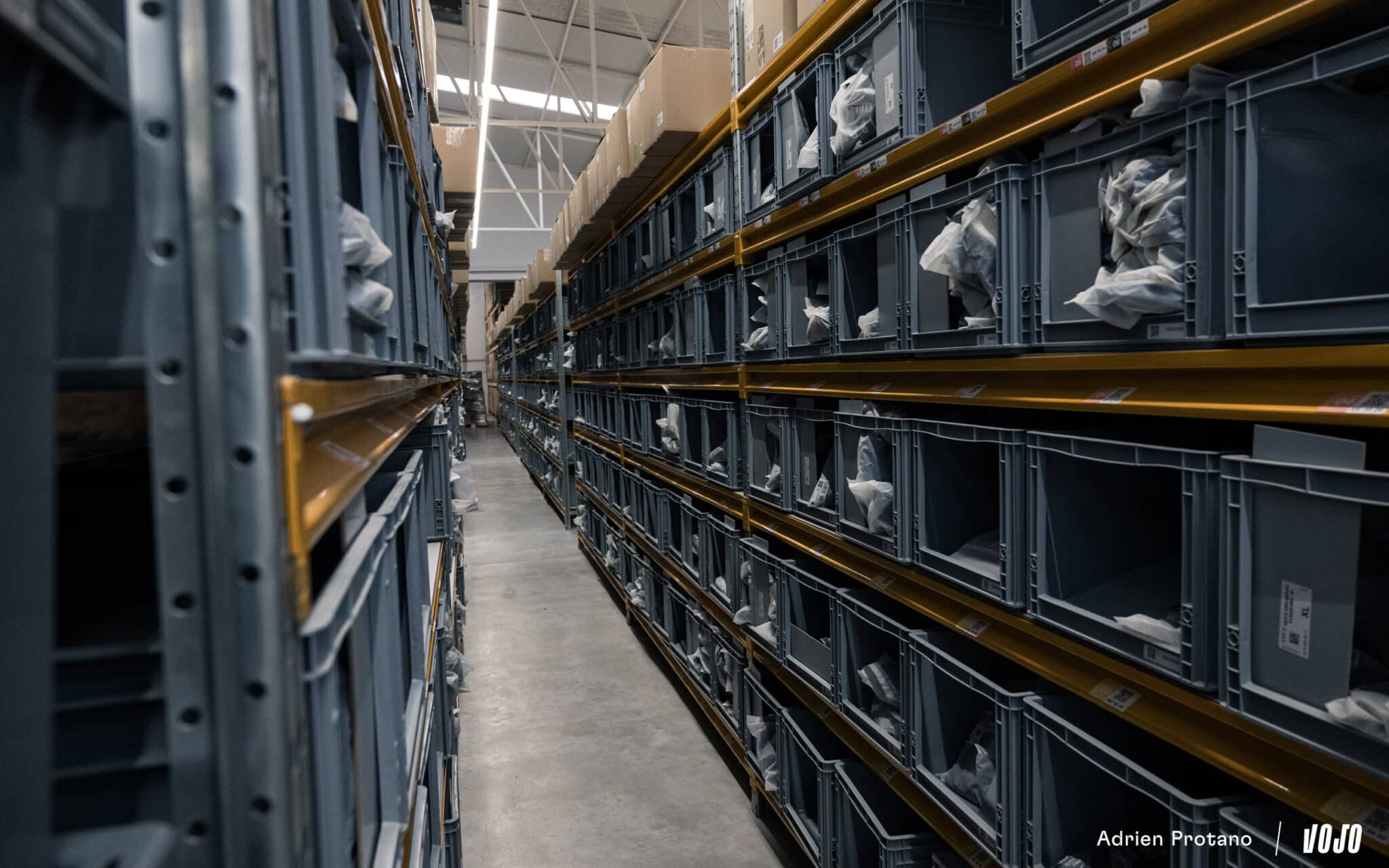Ici, rien n’est laissé au hasard. L’organisation et le rangement sont les mots d’ordre. Au détour d’une allée, on découvre une série de kits d’essai (photo en bas, à droite) que la marque envoie avant achat pour s’assurer du choix de la taille pour les différents modèles. Jolie attention !