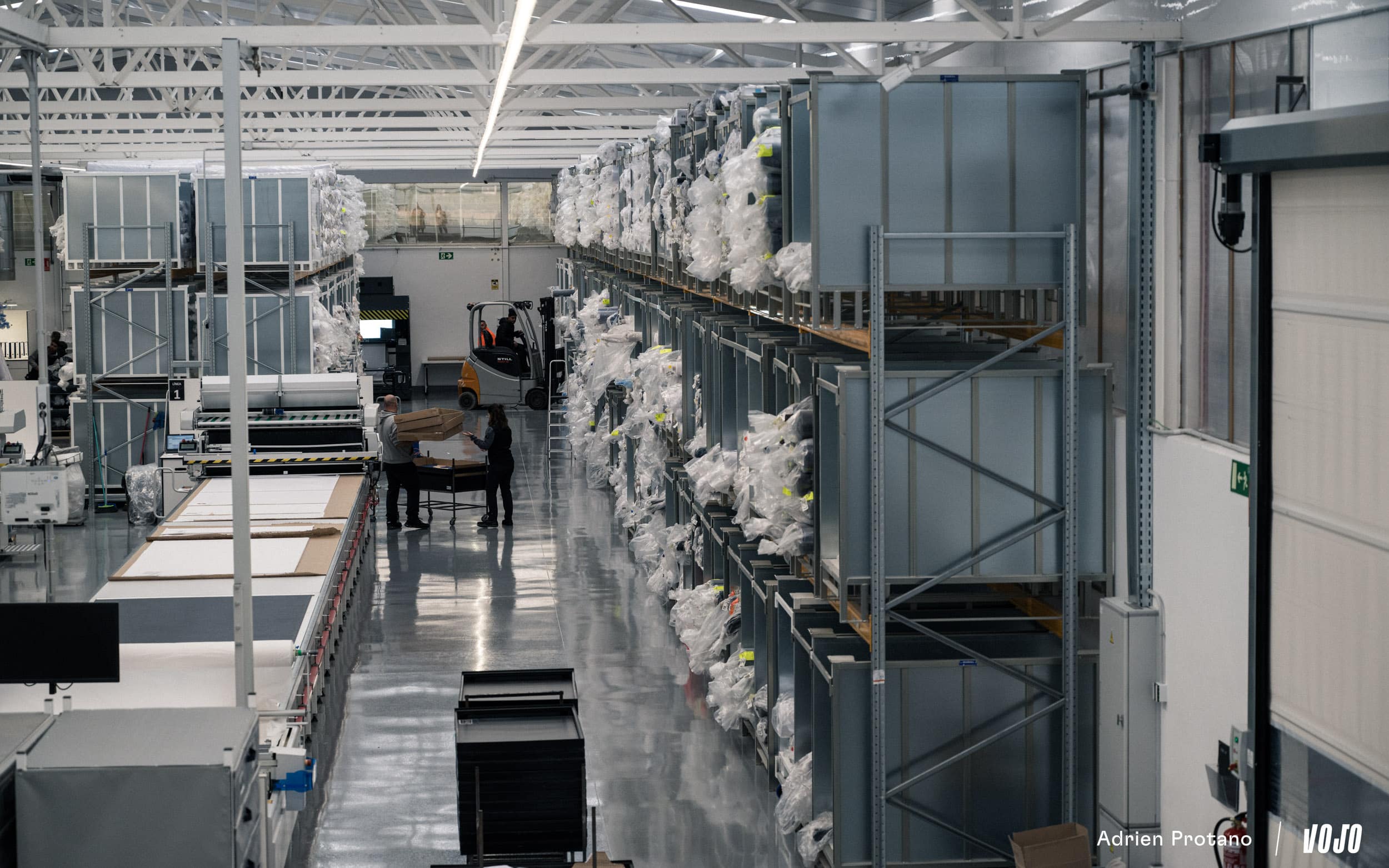 Le nouveau site de Yecla regroupe plusieurs zones de production et de développement. À l’intérieur, l’ambiance est étonnamment calme pour une usine de cette taille. Notre visite va suivre le processus de fabrication d’un vêtement de la marque.