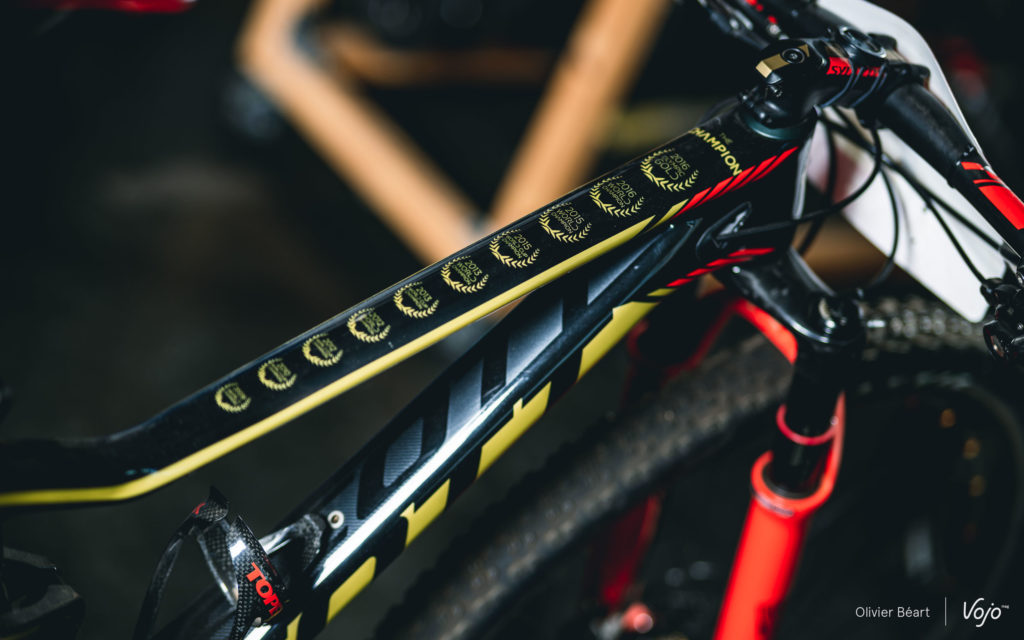 Ce vélo, vous l’avez certainement encore en mémoire, puisque c’est celui que Nino a roulé aux Gets l’été dernier, et avec lequel il est allé chercher son 10e titre de champion du monde (un record en XC, un de plus). Par contre, ce que vous ne savez pas, c’est le stress qu’il a causé à Yanick, à cause d’un ennui totalement improbable.