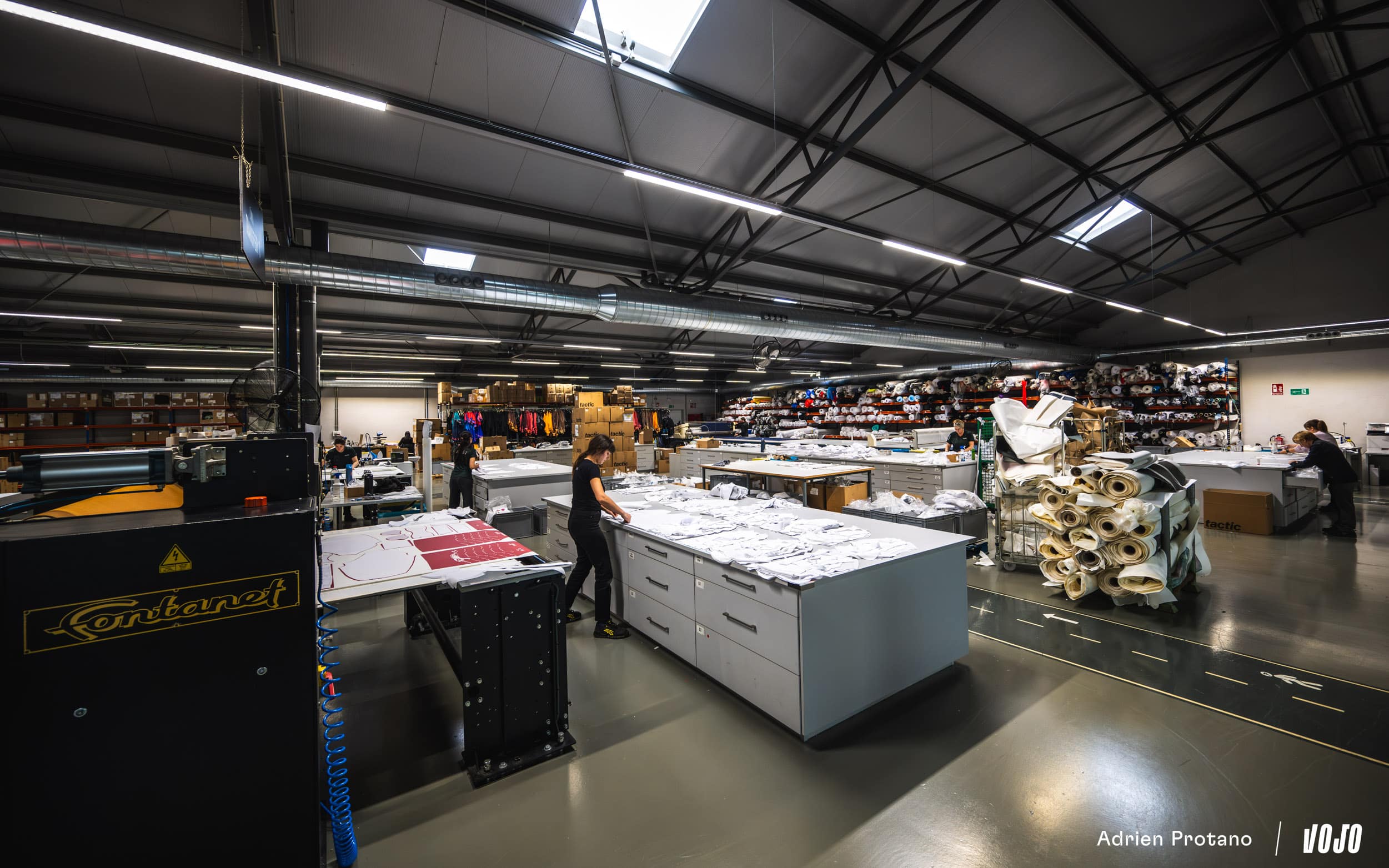 Avant de partir à destination de cet atelier d’assemblage, un dernier contrôle qualité est toutefois effectué avec attention. Tactic nous explique qu’à plein régime, la marque peut produire aux alentours de 700 maillots par jour, en sachant que les imprimantes peuvent tourner jusqu’à 24h sur 24h.