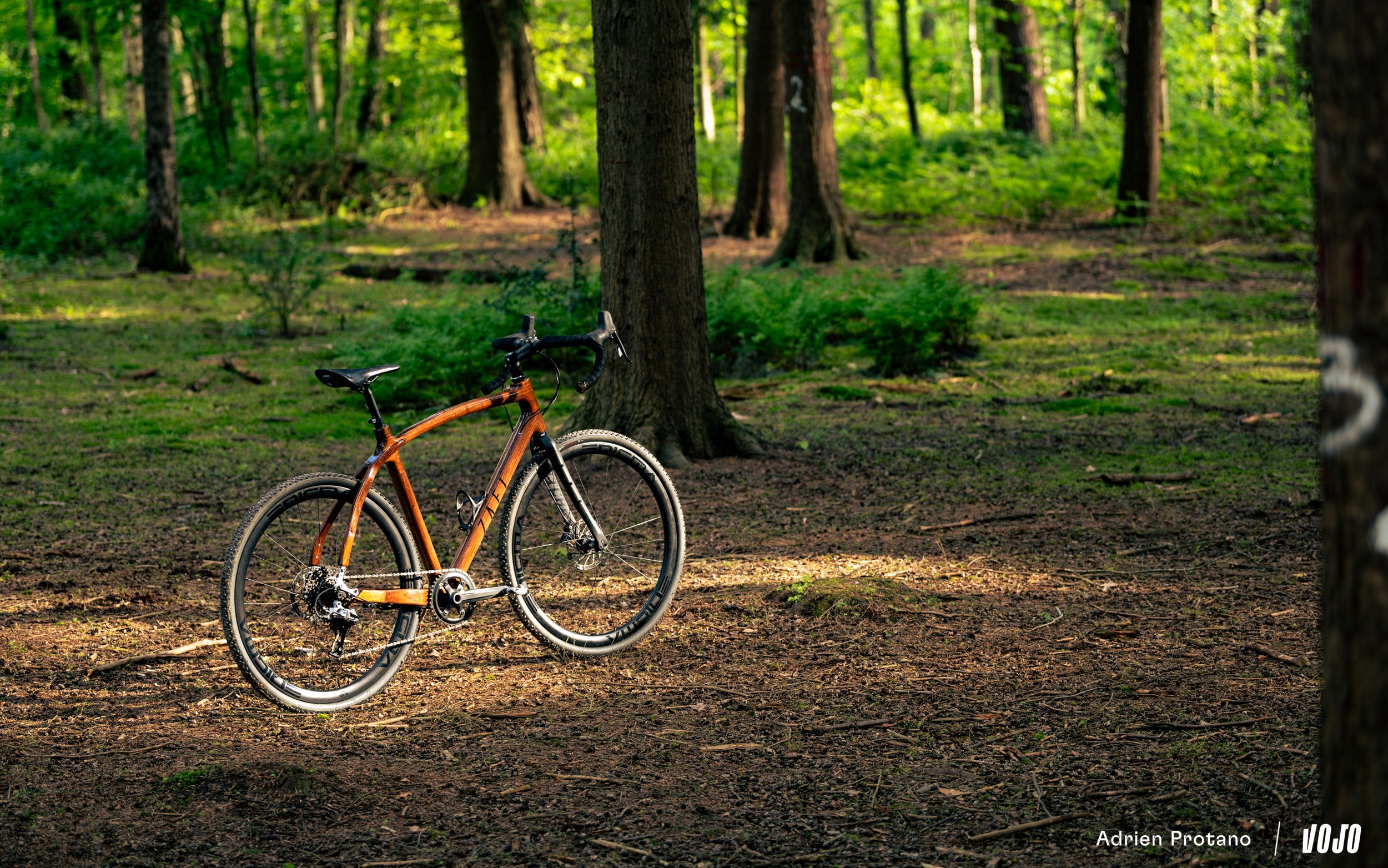 Avec cette bonne filtration des chocs et cette agréable position, on n’a pas pu résister à l’envie de l’emmener sur des singletracks davantage chaotiques et presque typés VTT, et le Zafi s’en est largement bien sorti. Au-delà du matériau, la géométrie du châssis permet d’offrir le bon mix entre stabilité et maniabilité. Dans les petits sentiers ludiques, le vélo se montre suffisamment maniable et vraiment agréable à piloter, sans pouvoir toutefois venir titiller les modèles gravel à la frontière du VTT… Tout est question de compromis, et ça, Zafi l’a bien compris !