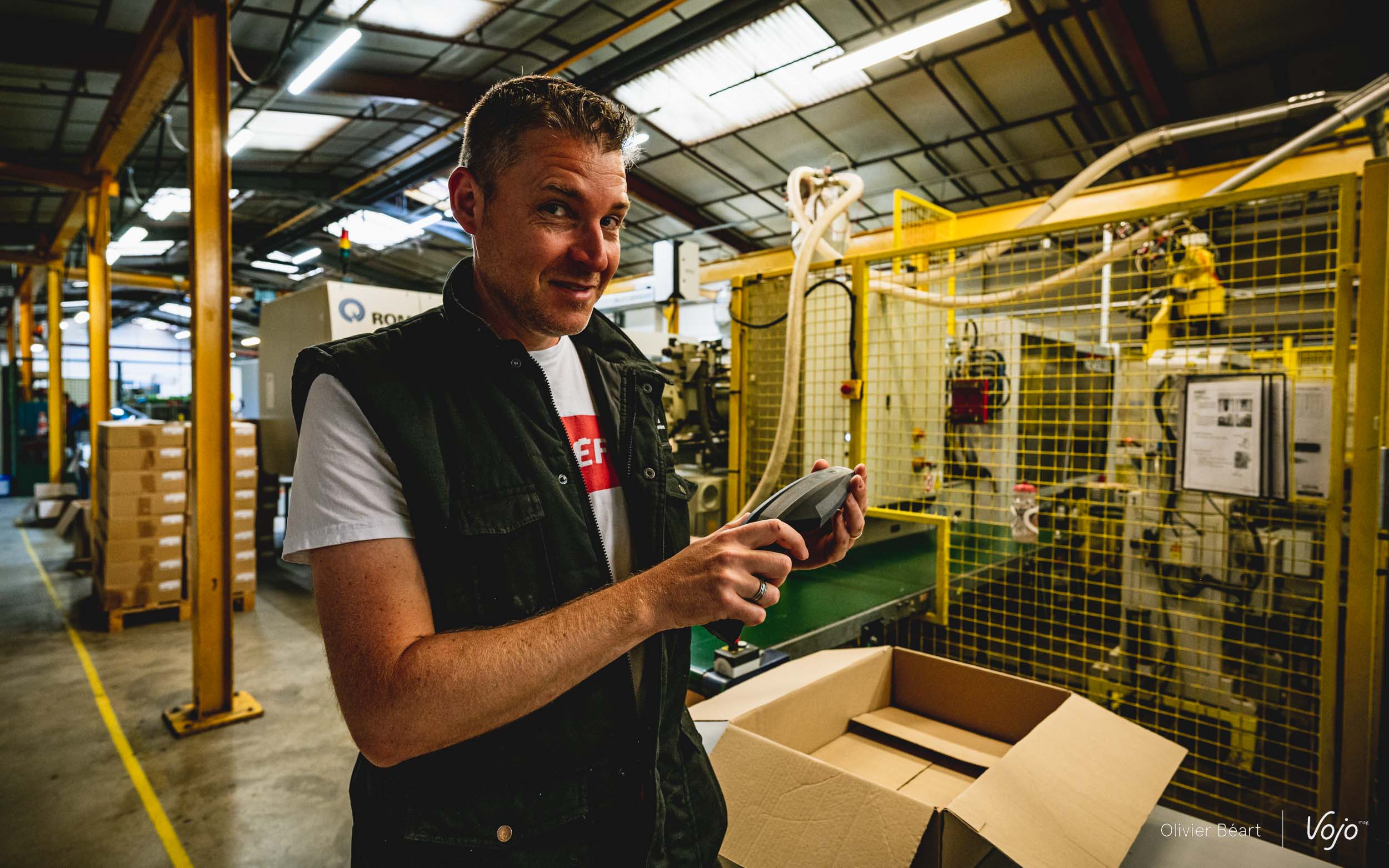 En tout, il y a plus de 130 moules différents qui tournent en alternance ! Et devinez quoi ? S’ils ne sont pas fabriqués en interne, ils sont bel et bien entretenus ici grâce à une importante équipe d’entretien et support technique. Et on met un point d’honneur à former la jeunesse, comme ce stagiaire en plein apprentissage (à droite).