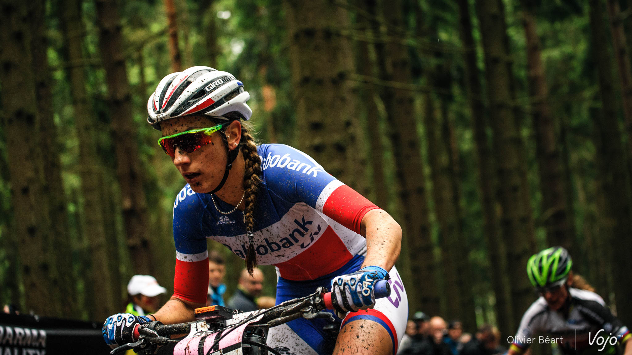 Seule Pauline Ferrand-Prevot semble en mesure de suivre le rythme imprimé par Neff en début d’épreuve. Et encore, à bonne distance. Déjà, on pense au titre de notre article : « La jeunesse au pouvoir à Nove Mesto ». Mais juste derrière un casque vert fait son apparition.